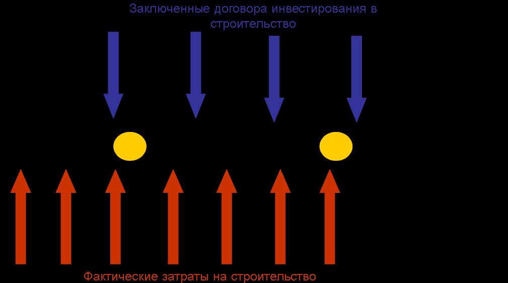 В момент завершения проекта накопленные фактические затраты по проекту, относящиеся к реализованным квартирам, списываются на регулирующий счет